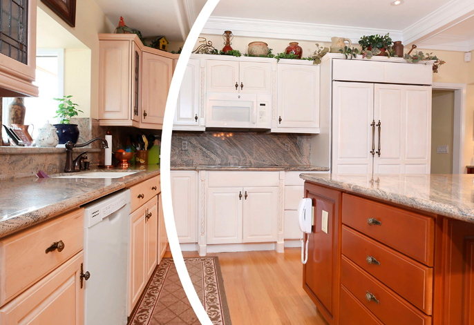 Using industrial-grade lacquers and advanced spray technology, we transform dark oak, melamine, or maple cabinets into elegant, modern centerpieces. Our process ensures a durable, non-peeling finish that stands up to the daily demands of a busy kitchen.