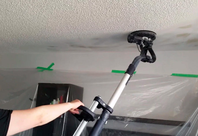 The biggest fear homeowners have about popcorn removal is the mess. We address this with a Full-Containment Protocol. We isolate the work area with plastic shielding from floor to ceiling, protect all flooring with heavy-duty paper, and use wet-scrape techniques combined with HEPA-vacuum sanding to ensure your home stays clean.